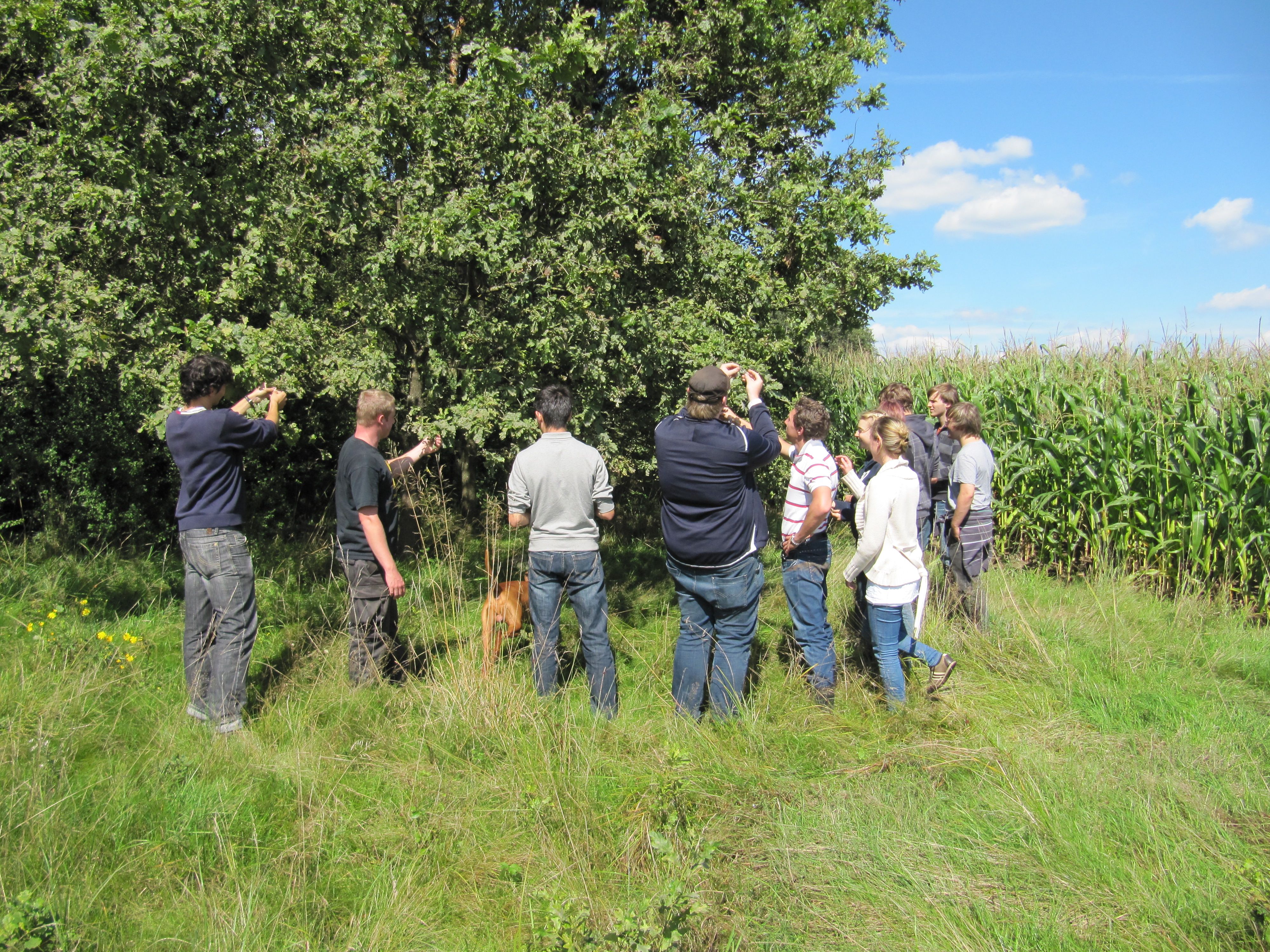 Die Lehrfächer Jagdbetrieb und Hundewesen erfahren hier gelebte Praxis. Dafür sorgt auch ein Wildkühlraum mit angeschlossenem Zerwirkraum im Revier. Bei unseren Reviergängen zeigen wir Ihnen die Praxis zum zuvor erlernten theoretischem Wissen. Fragen zum Hochsitzbau, Aufstellen von Fallen, Drückjagdsimulation und natürlich auch die Bestimmung von Hecken und Bäumen werden hier besprochen.